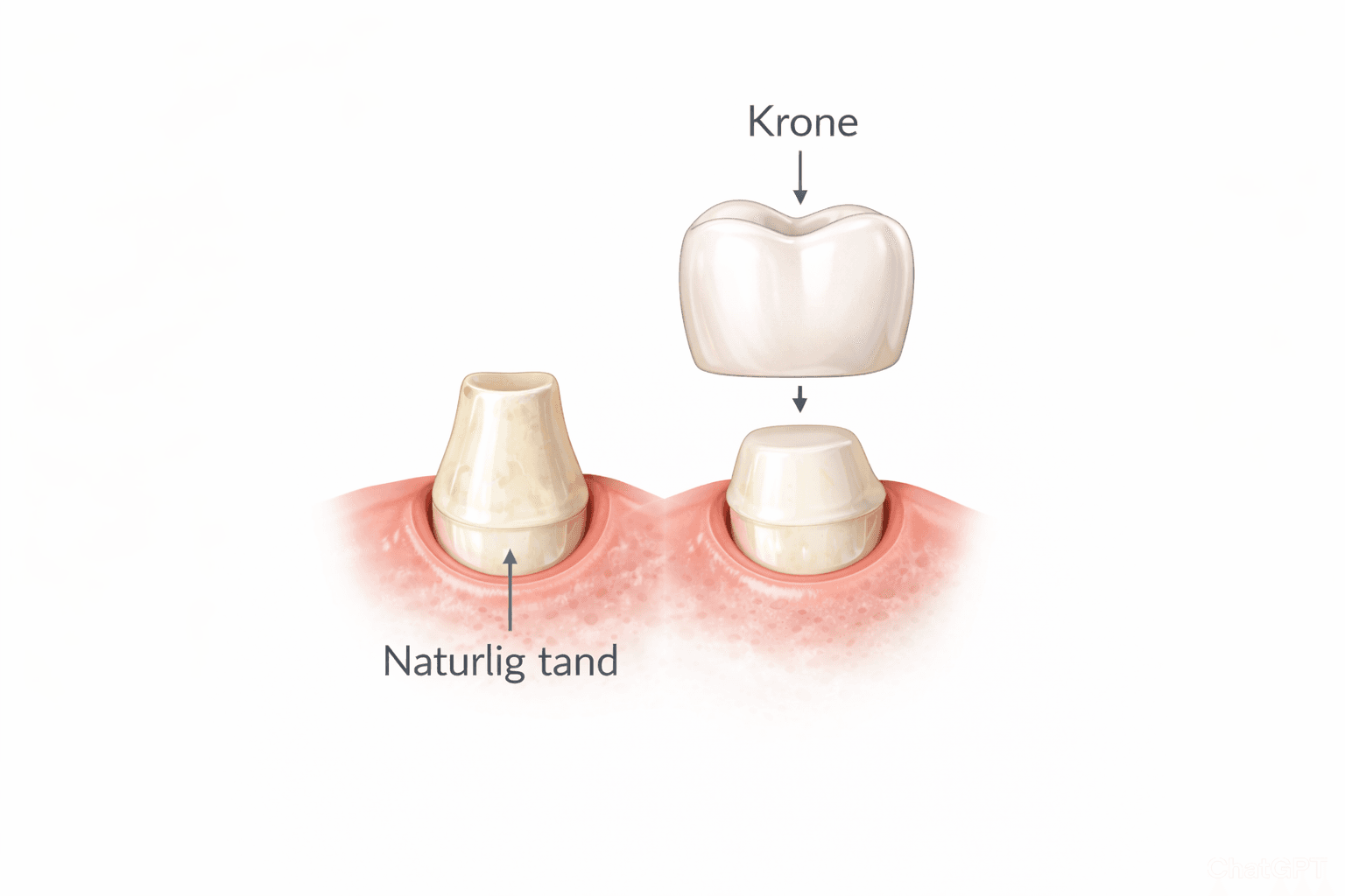 En krone omslutter hele tanden og genskaber både form, styrke og udseende.