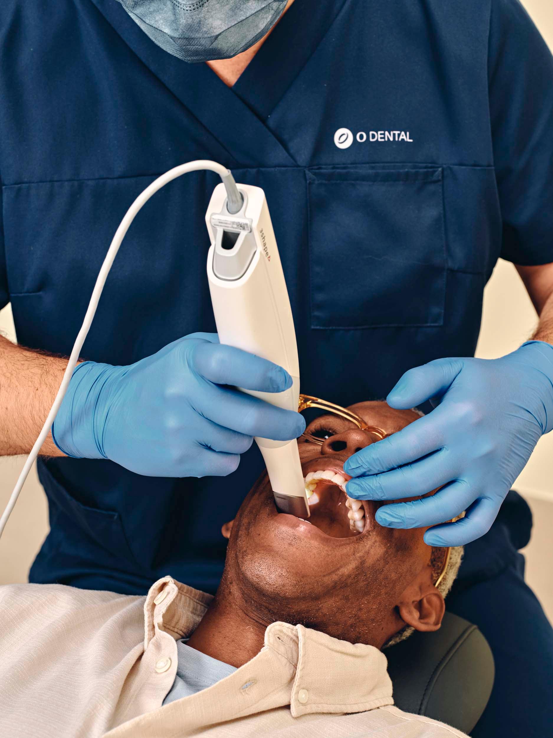 Hos Brædstrup Implantat Center anvender vi digitale scannere i stedet for traditionelle silikoneaftryk. Det betyder, at dine tænder registreres med høj præcision via en 3D-scanning, som danner grundlag for den videre fremstilling.